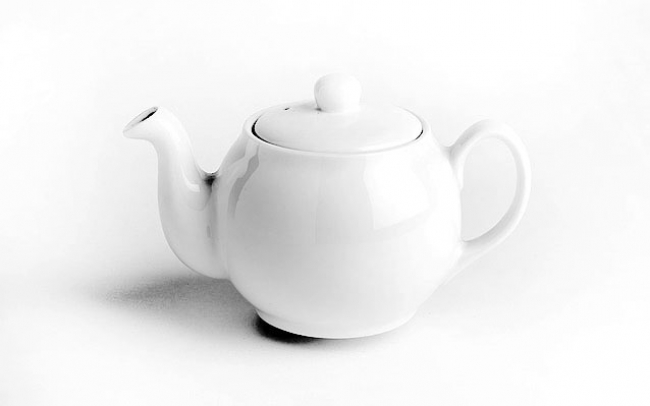 Small round Ronnefeldt company white porcelain teapot perfect for everyday use. Related articles: plastic strainer with stainless steel gauze for loose tea (10322) and porcelain strainer cup (10356).