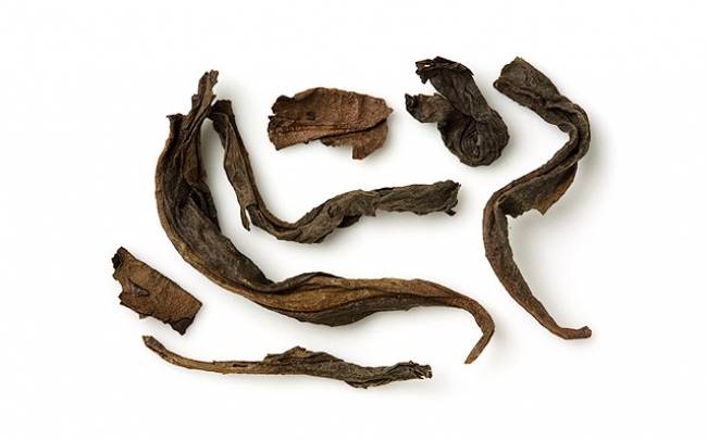 A cross section of highly oxidised oolong tea from China’s Fujian Province. Big, brown leaves twisted lengthwise yield a brew with a characteristic roasted aroma because of the way the leaves are processed, and the scent of minerals thanks to the rocky soil in which the teas grow. In the backdrop, the sweeter notes of honey and nuts gradually unfold.