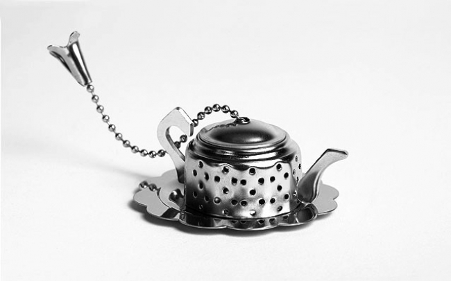 Teapot shaped stainless steel tea infuser with tray. Suitable for 1 cup 200 ml.