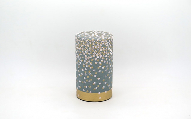 Japanese tea tin covered in traditional Washi paper featuring an exquisite flower pattern, with a second internal flavor-protective lid.